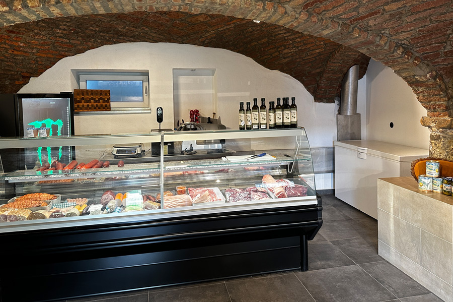 Unser Hofladen befindet sich auf unserem schönen Limmerhof. Nach dem liebevollen Umbau ist aus einem ehemaligen Stall ein gemütlicher und gleichzeitig moderner Verkaufsraum geworden. Das nebenan verarbeitete Fleisch wandert direkt in die Auslage. Noch kürzere Wege sind gar nicht möglich. Neben unseren eigenen Erzeugnissen können Sie hier auch weitere regionale Produkte, beispielsweise Öle oder Eingelegtes, wie Sauerkraut oder Gewürzgurken, teilweise jahreszeitlich wechselnd, erwerben.